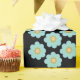 Blue daisy blossoms, decorative pattern. Custom background colour