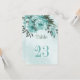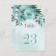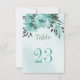Unique table number card featuring romantic blue flowers and green leaves.