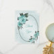 Unique thank you card featuring romantic blue flowers and green leaves.
