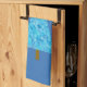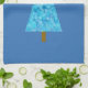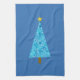 A simplified modern take on a classic Christmas tree motif towel, light blue tonal poinsettia flowers on deeper blue with a deep, midnight blue background