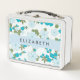 Blue Flowers, Pattern Of Flowers, Your Name Metal Lunch Box