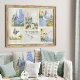 "Blue Flowers Sunflowers Dragonfly French Garden Collage Crafting Decoupage Tissue Paper, heavy weight for furniture decoupage, wall art or gift wrapping." This is a series of painterly style paintings that were created in oil pastels. Elegant blue Delphinium flowers and sunflowers in a collage with blue butterflies, dragonflies and a bird in a cottage garden setting. All artwork was painted by internationally licensed artist and designer, Audrey Jeanne Roberts, copyright.