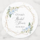 Add a personal touch to your bridal shower celebration with these stylish and memorable party items! Design features blue and white watercolor flowers, greenery, gold confetti and gold frame on white background.