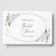 Add a personal touch to your bridal shower celebration with these stylish and memorable party items! Design features blue and white watercolor flowers, greenery, gold confetti and gold frame on white background.