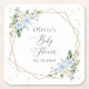 Blue Flowers, White Flowers, Greenery, Baby Shower Square Paper Coaster