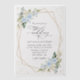 Invite friends and family in style and set the tone for your special day with this charming wedding invitation. Design features blue and white watercolor flowers, greenery, gold confetti and gold frame.