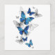 Flying Blue Butterflies morpho and white butterflies on a light abstract background. Morpho. Design with blue butterflies morpho.