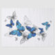 Flying Blue Butterflies morpho and white butterflies on a light abstract background. Morpho. Design with blue butterflies morpho.
