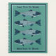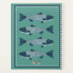 Four simple, blue-toned trout or salmon in folk art style on a light blue-green background. For more contrast you may change the background colour. There are two places where you may customise by adding your own text. You may change both the font and text colour. You may also change the colours of the border or remove it altogether.
