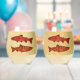 Blue Folk Art Trout/Salmon Stemless Wine Glass
