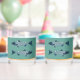 Two simple, blue-toned trout or salmon in folk art style on a light blue-green background. Customise by adding a bit of text on the reverse side. For more contrast you may change the background colour. You may also change both the font and text colour.