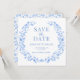 Capture the essence of sophistication and rustic folk charm with this botanical save-the-date photo invitation. The elegant boho design is complemented by a beautiful blue floral wreath, setting the perfect tone for your upcoming celebration.