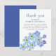 Personalised funeral thank you card to send out to friends and family who have shown you love and kindess during your time of grief. Featuring a traditional white background that can be changed to any colour, blue forget-me-not flowers with matching blue text and a thank you template.