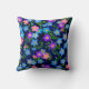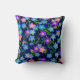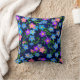 Original fine art design of colourful blue and pink Forget Me Not garden flowers against an elegant midnight blue background by artist Carolyn McFann of Two Purring Cats Studio printed on a quality and customisable American Mojo brand throw pillow for all who love Forget Me nots.