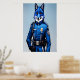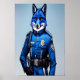 A portrait of a cute and adorable blue fox in a police uniform. This is a AI generated art.