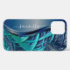 Blue Fractal Lines Metallic Handwritten Monogram Case-Mate iPhone Case