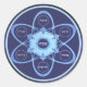 This blue themed-image features a modernistic Passover Seder plate on a fractal background. "Pesach" and the names of each of the special foods found on a Seder plate appear in Hebrew text.