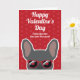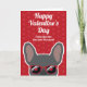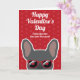 Frenchies, send your human a valentine's day card just from you. The design features an illustration of a cute blue french bulldog wearing red sunglasses on a red background with a subtle heart pattern. The wording on the front reads "Happy Valentine's Day from the one you love the most" but can be changed. Inside wording reads "I pawsitively love you" but can also be changed.