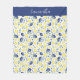 This blue French Country lemon pattern fleece blanket features watercolor lemons, delicate blue botanical accents and custom monogram or name. This design offers a perfect blend of rustic warmth and sophisticated style.