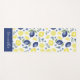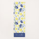 Stylish yoga mat featuring a blue French country lemon pattern with name.