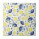 This blue French Country lemon pattern ceramic tile, features watercolor lemons and delicate blue botanical accents.This design offers a perfect blend of rustic warmth and sophisticated style.