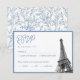 Invite your guests in style with these blue floral Bat Mitzvah RSVP enclosure cards personalised with your information. The design features a blue toile floral design on the back with an Eiffel Tower photo and personalised text to share the details of your event on the front. Enter the Zazzle Design Tool to make additional adjustments.