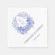 Blue French Floral Crest Wreath Monogram Wedding Napkin