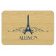 Elegant and chic French Flourish Premium Magnet featuring a faux woodgrain look background and an Eiffel Tower design in dark blue adorned with cascades of stylish swirls. This girly and trendy design is easy to customise with the personalised text of your choosing. Click "Customise It" to find more personalisation options.