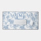 Blue French Toile Monogram Name Desk Mat