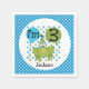 Blue Frog 3rd Birthday paper napkins are fun, colourful, great for kids who love frogs! Features a cute green frog wearing a polka dotted party hat, green and blue polka dots, balloons of blue and green that read I'm 3, and a background of blue polka dots. You can easily add the third birthday child's name to personalise these frog theme paper napkins. Look for the matching frog 3rd birthday paper plates, favour bags, T-shirts, buttons, bags, and more!