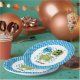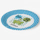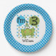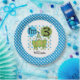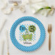 Blue Frog 3rd Birthday paper plates are fun, colourful, great for kids who love frogs! Features a cute green frog wearing a polka dotted party hat, green and blue dots, balloons of blue and green that read I'm 3, and a wide border of blue on blue polka dots. You can easily add the third birthday child's name to personalise these frog theme paper plates. Look for the matching napkins, T-shirts, buttons, bags, and more!