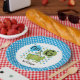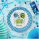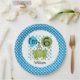 Blue Frog 6th Birthday paper plates are fun, colourful, great for kids who love frogs! Features a cute green frog wearing a polka dotted party hat, green and blue dots, balloons of blue and green that read I'm 6, and a wide border of blue on blue polka dots. You can easily add the sixth birthday child's name to personalise these frog theme paper plates. Look for the matching napkins, T-shirts, buttons, bags, and more!