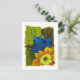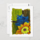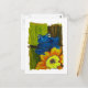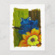 Blue frog relaxing on flower and tree branch postcard