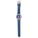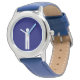 A cool white graphic man symbol where the arms are the watch pointers, moving and creating different positions. Feel free to edit the design and change the background blue navy color