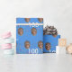 Custom funny face cut-out photo wrapping paper for a 100th birthday party. Design with confetti, a blue background, and a happy birthday message. To change the colour please click the button to edit the design. To make the cut-out of the photo you can download any free mobile app, or use Canva, or Photoshop and upload a transparent png file.