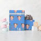 Custom funny face cut-out photo wrapping paper for a 16th birthday party. Design with confetti, a blue background, and a happy birthday message. To change the colour please click the button to edit the design. To make the cut-out of the photo you can download any free mobile app, or use Canva, or Photoshop and upload a transparent png file.