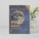A real gold foil wedding Invitation comes to life with these blue celestial galaxy sky elements. Get ready for a personalised and enchanting celebration of love. Customise it with your wedding venues names, occasion, date and time. The background of this design is something between blue tones with stars, galaxy and moon, glitter. The real foil is changeable in gold, silver and rose gold. The foil has a frame, typography, some stars and are changing to your selected foil colour.