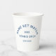 Game Set Match, blue crest, tennis tournament paper cups. Personalise with the year, tennis club / championship / tournament name and location. Perfect for a Wimbledon or tennis open party, for a local tennis club party or for a tennis themed bachelor, bachelorette or birthday party. Designed to match our Game Set Match Tennis Collection.