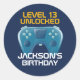 Blue Gamer Boy Gaming Level Unlocked Birthday Classic Round Sticker