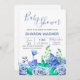 A floral invitation featuring a variety of blue flowers against a white background. Featured for a baby shower, it's suitable for most happy celebrations. (<a href='https://www.freepik.com/free-vector/wedding-invitation-with-blue-flowers_2326398.htm'>Designed by Freepik</a>). <br/><br/>The card is easy to customise with your wording, font and font colour.<br/><br/>Not exactly what you're looking for? All our products can be custom designed to meet your needs at no extra charge.<br/><br/>Simply contact us at askcottonlamb@gmail.com.<br/><br/>Coordinating products available: Just ask us!