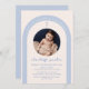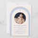 Blue Gender Neutral Boho Arch Cross Photo Baptism Invitation