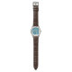 I was uncertain about the size being too small but it looks good. The case looks like aluminum (not shiny) and the time is easy to see. I changed the band because the leather doesn't go with my lifestyle.a. Exactly what I expected, nice yellow. It grabs peoples attention.