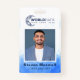 Modern photo ID badge with blue geometric pattern and barcode. Features space for employee name, title, company logo, ID number, expiration date, and return instructions. A clean and professional solution for office, tech, or business identification. Easily customised for corporate or remote teams.
