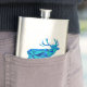 This design is the outline of a bull elk filled with coloured blue, cyan, and turquoise geometric shapes.