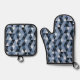 Blue Geometric Pattern Oven Mitt & Pot Holder Set