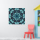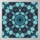 This mesmerising design features a glowing kaleidoscope pattern in vibrant shades of turquoise and electric blue, layered over a dark textured background. The intricate geometric symmetry creates a star-like mandala effect, radiating depth and energy. The blend of sharp angles and soft glowing lines gives it a futuristic, luminous quality that draws the eye. Perfect for those who love bold, abstract, and visually striking patterns.