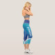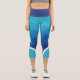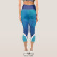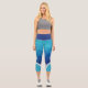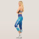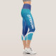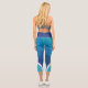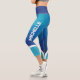 These modern workout leggings feature trendy geometric shades of blue with customisable name on both sides in white all caps font.