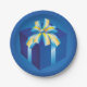 Blue Gift Box with Yellow and Aqua Ribbon Paper Plate