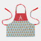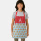 This adorable apron features a blue background with boy, girl and Santa gingerbread people and a red and white polka dot accent. Personalise with an initial.