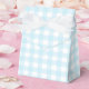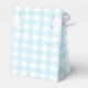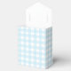 Tent-style with white ribbon favour box with an image of baby blue gingham. See the entire Kids’ Corner Favour Box collection in the PARTY FAVORS section.